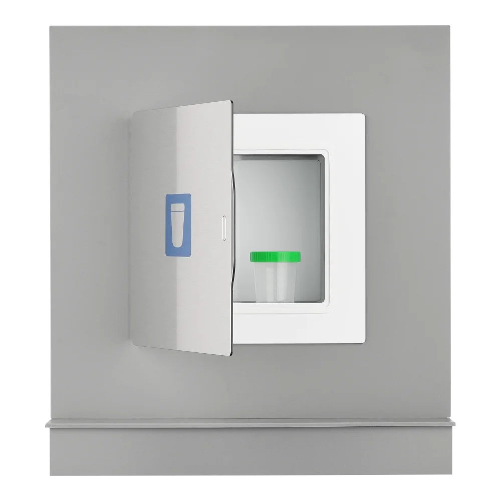Die LaboLite®-Durchreiche in gebürsteter Edelstahloptik verbindet die bewährte Funktion der klassischen LaboLite® mit einer hochwertigen, metallischen Oberfläche. Sie ermöglicht eine diskrete und hygienische Probenübergabe zwischen Praxis- bzw. WC-Bereich und Labor, ohne dass Patienten oder Personal zusätzliche Wege durch andere Räume zurücklegen müssen.